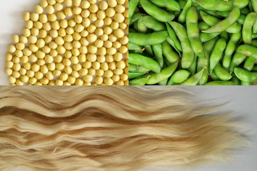 La soia (una pianta leguminosa) viene usata principalmente per scopi alimentari (olio, farina, semi). Dai residui della lavorazione alimentare (bucce e baccelli, contenenti proteine globulari), vengono estratte le proteine sotto forma di liquido, e successivamente le fibre.