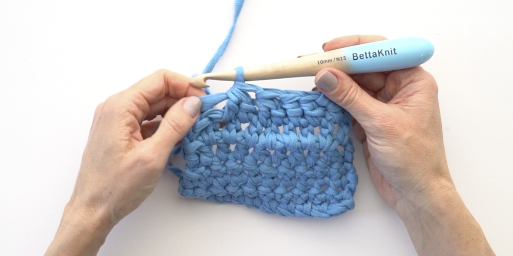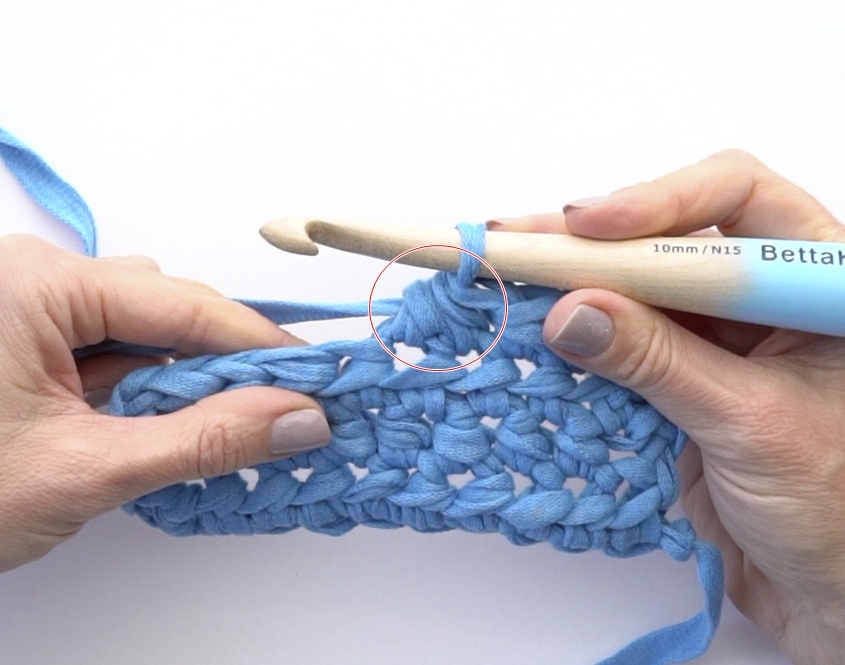 - Inserisci l’uncinetto nella maglia successiva.